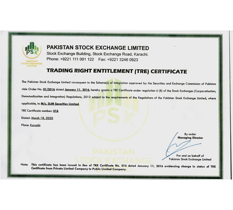 DJM Securities Limited (DJML) was established in June 17, 2002 under the Companies Ordinance of 1984 to provide specialized financial services to both the institutional and private sector in the area of both local and international equity and future markets.